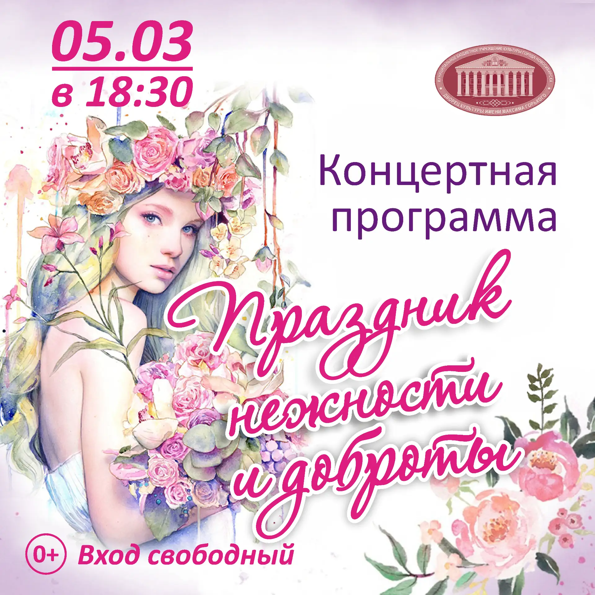 Концерт творческого коллектива ДК им. М.Горького, посвященный Международному женскому дню. Вход свободный.