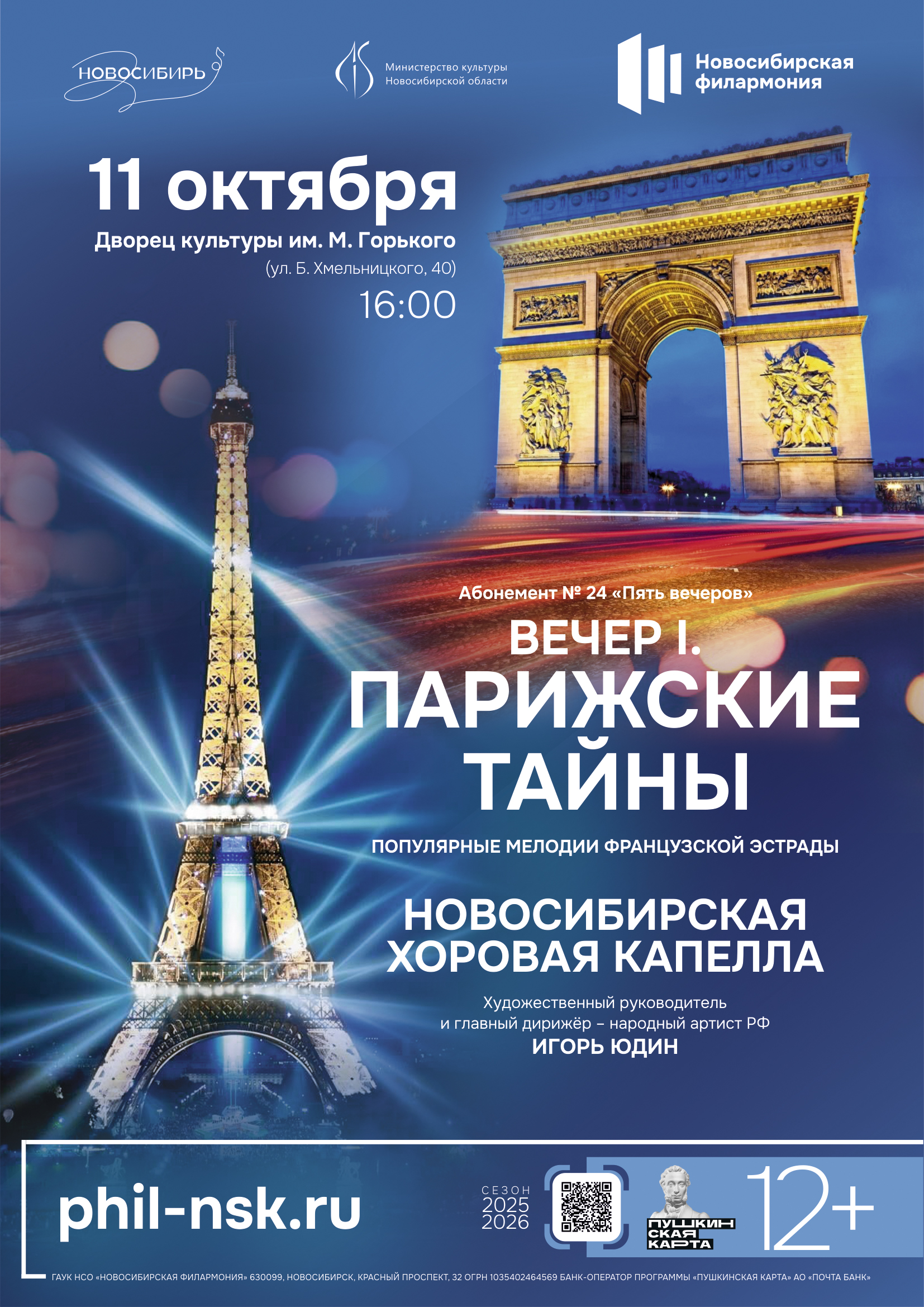 Афиша Афиша Цирк "Галактика"11.10.2025. Начало: 12-00Представление для детей. Вход по билетам.Подробности мероприятияКонцерт новосибирской филармонии11.10.2025. Начало: 16-00Концерт по абонементу №24. Вход по билетам.Подробности мероприятия