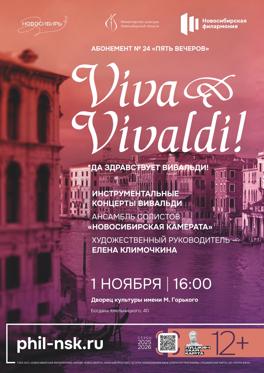 Афиша Афиша Концерт новосибирской филармонии01.11.2025. Начало: 16-00Концерт ансамбля солистов "Новосибирская камерата" новосибирской филармонии /абонемент №24/. Вход платный.Подробности мероприятия
