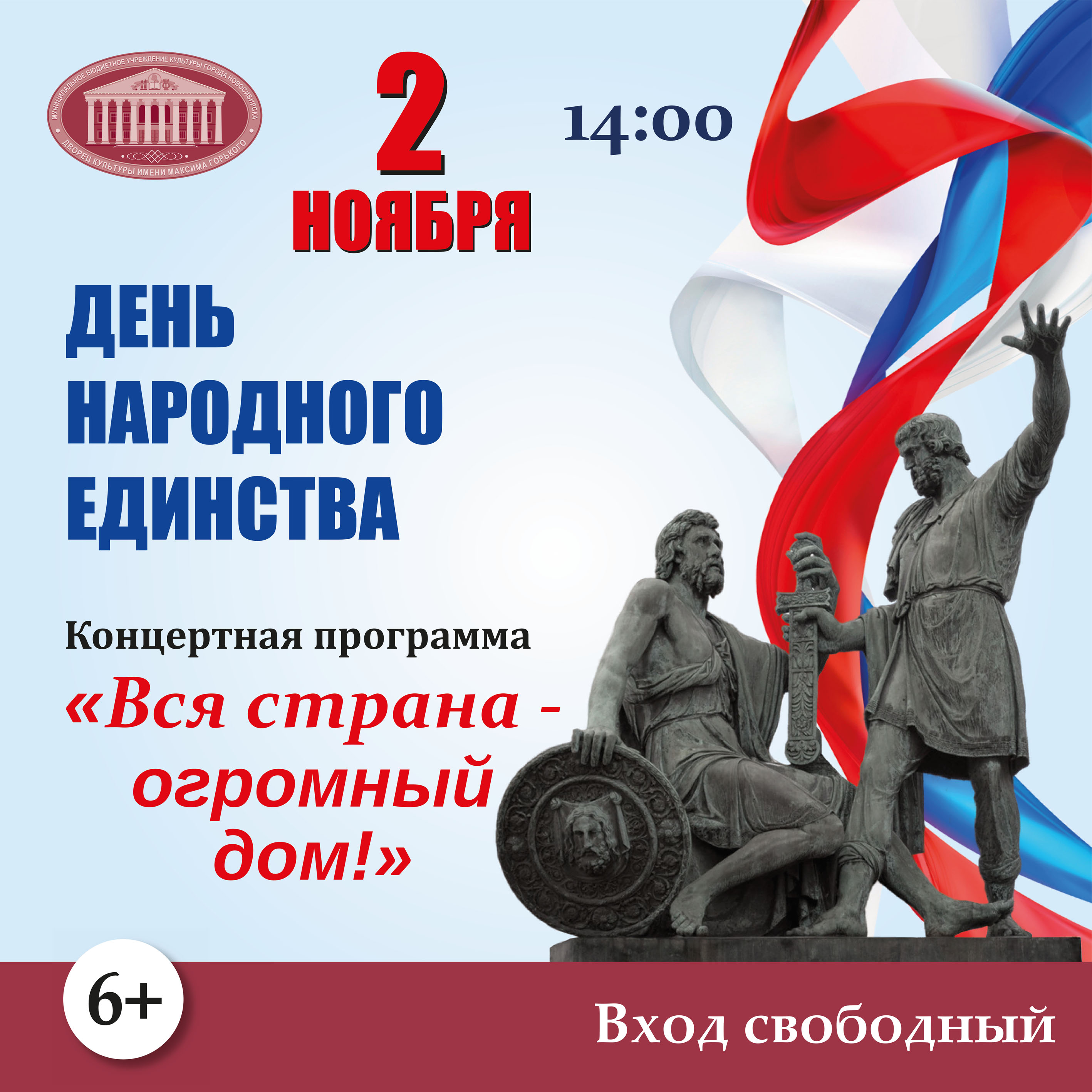 Афиша Афиша Концерт "Вся страна-огромный дом!"02.11.2025. Начало: 14-00Концерт творческого коллектива ДК им. М. Горького, посвященного Дню народного единства. Вход свободный.Подробности мероприятия