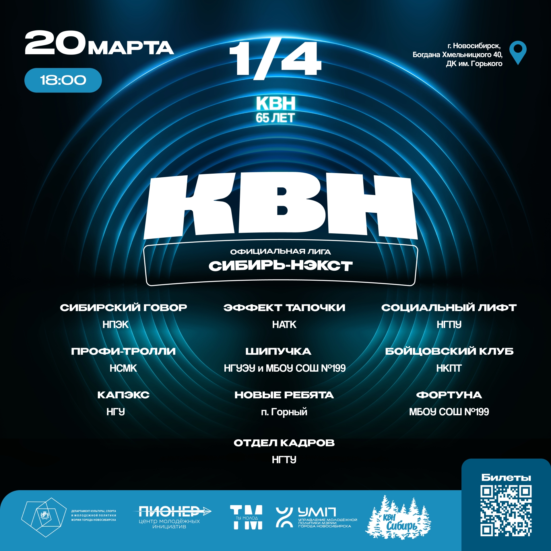 Афиша Афиша КВН-СИБИРЬ-НЭКСТ20.03.2026. Начало: 18-00Игра КВН. Вход по билетам.Подробности мероприятия