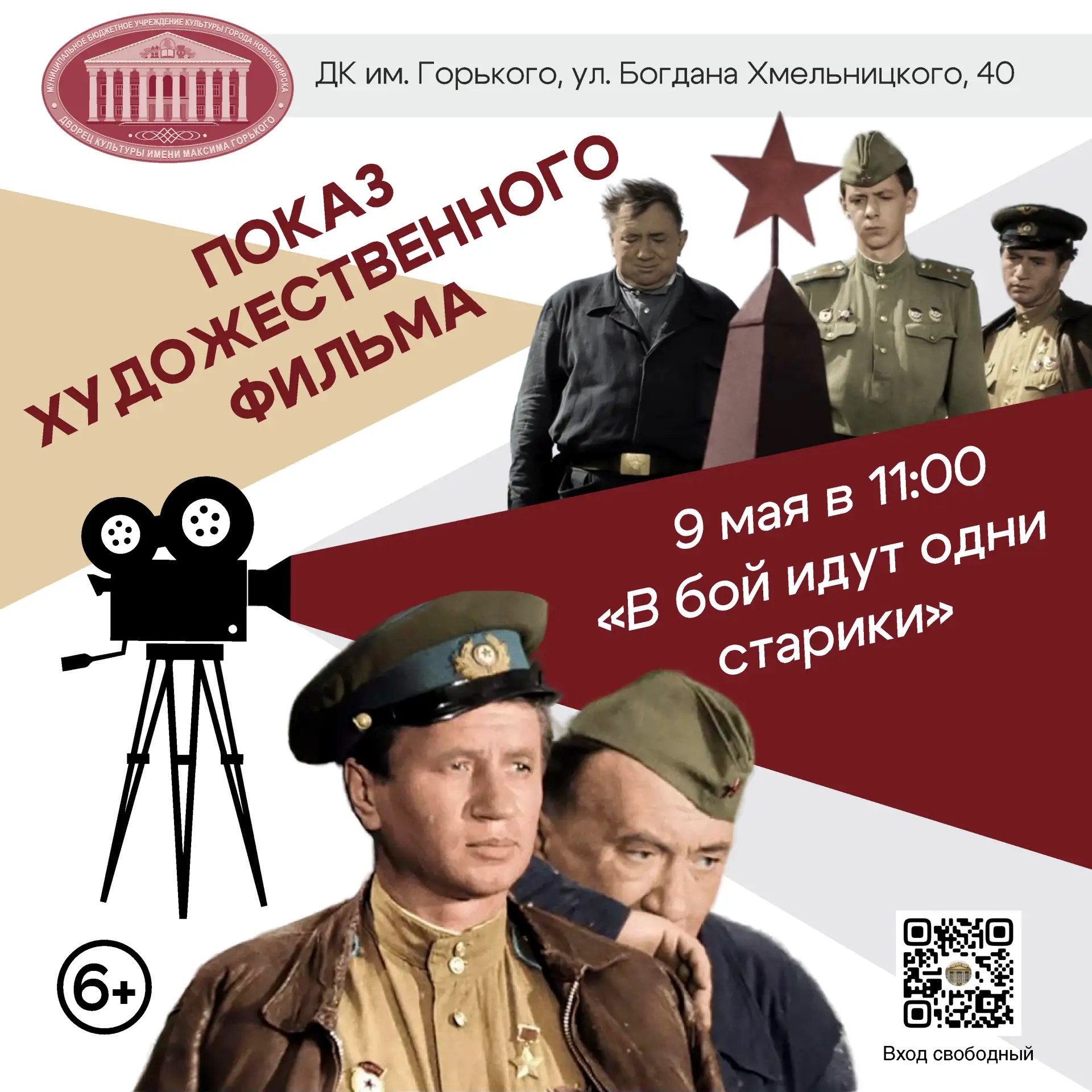 Кинопоказ, посвященный Дню Победы в Великой Отечественной войне 1941-1945гг. Вход свободный.